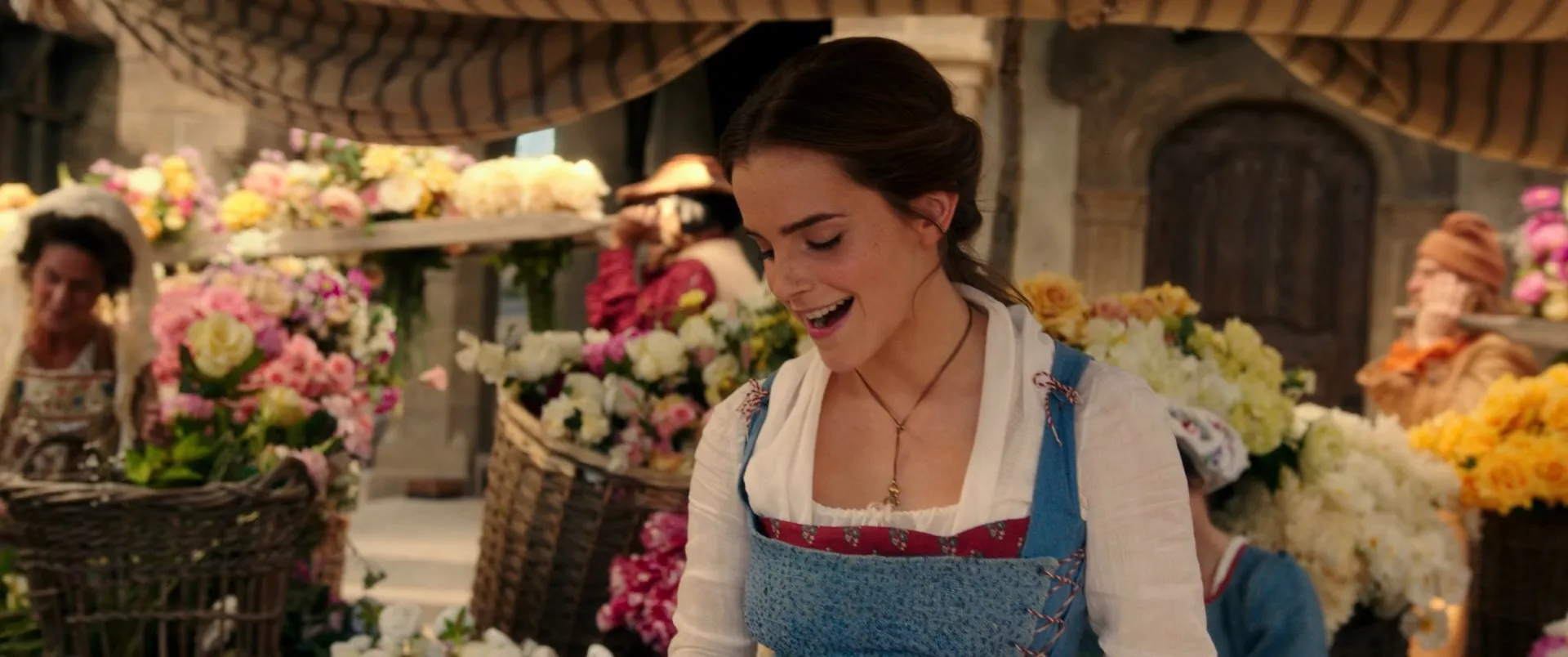 Actors: Emma Watson as Belle, Dan Stevens as Beast, Luke Evans as Gaston, Josh Gad as LeFou, Kevin Kline as Maurice, Hattie Morahan as Agathe / Enchantress, Haydn Gwynne as Clothilde, Gerard Horan as Jean the Potter, Ray Fearon as Père Robert, Ewan McGregor as Lumière, Ian McKellen as Cogsworth, Emma Thompson as Mrs. Potts, Nathan Mack as Chip, Audra McDonald as Madame Garderobe, Stanley Tucci as Maestro Cadenza, Gugu Mbatha-Raw as Plumette, Clive Rowe as Cuisinier, Thomas Padden as Chapeau, Rita Davies as Old Woman, D.J. Bailey as Vagrant, Adrian Schiller as Monsieur D'Arque, Harriet Jones as Queen, Adam Mitchell as Young Prince, Tom Turner as King, Michael Jibson as Tavern Keeper, Zoe Rainey as Belle's Mother, Daisy Duczmal as Baby Belle, Jolyon Coy as Young Maurice, Jimmy Johnston as Tom, Dean Street as Dick, Alexis Loizon as Stanley, Sophie Reid as Village Lass, Rafaëlle Cohen as Village Lass, Carla Nella as Village Lass, Obioma Ugoala as Flirtatious Farmer, Lynne Wilmot as Barmaid, Jane Fowler as Pretty Female Fishmonger, Alison Harding as Head Washer, Chris Andrew Mellon as Nasty Headmaster, Jemma Alexander as Housewife, Sandy Strallen as Cobbler, Dale Branston as Baker, Daniel Ioannou as Barber, Peter Challis as Butcher, Wendy Baldock as Washer Woman, Norma Atallah as Washer Woman, Leo Andrew as Apothecary, Steven Butler as Cheese Maker, Sharon Gomez as Cheese Maker, Jacqui Jameson as Cheese Maker, Vivien Parry as Village Lass's Mother, Simone Sault as Wood Carrier, Beth Willetts as Jam Seller, Mandy Montanez as Bread Buyer, Tom Oakley as Fishmonger, William Bozier as Stable Boy, Jak Allen-Anderson as Apothecary's Patient, Phil Grannel as Fiddler, Freddie August as Fiddler, Nicola Keen as Female Villager / Celebration Woman, Ebony Molina as Female Villager / Celebration Woman, Alison Jenkins as Female Villager / Celebration Woman, Ellen O'Grady as Female Villager, Dawn Buckland as Female Villager, Rebecca Mckinnis as Female Villager, Jody Hall as Male Villager, Ben Fox as Male Villager, Nathan Vaughan Harris as Male Villager, Tim Stanley as Male Villager, Ben Clare as Male Villager, Marina Abdeen as Debutante, Danielle Acors as Debutante, Hayley Ainsley as Debutante, Rhianne Alleyn as Debutante, Gabby Antrobus as Debutante, Sophie Atkins as Debutante, Koko Basigara as Debutante, Holly Bluett as Debutante, Daisy Boyles as Debutante, Ava Brennan as Debutante, Sophia Brown as Debutante, Sophie Carmen-Jones as Debutante, Cassie Clare as Debutante, Tanya Cumberland as Debutante, Natalie Davis as Debutante, Paige Drury-Lawrence as Debutante, Stephanie Elstob as Debutante, Cordelia Farnworth as Debutante, Cj Field as Debutante, Lily Frazer as Debutante, Lucy Alexa Gilbert as Debutante, Helen Gulstan as Debutante, Selina Hamilton as Debutante, Leah Hill as Debutante, Abigayle Honeywill as Debutante, Chelsea Inez as Debutante, Blythe Jandoo as Debutante, Shireen Jathoonia as Debutante, Billie Kay-Piper as Debutante, Hannah Kenna-Thomas as Debutante, Ella Kora as Debutante, Jennifer Leung as Debutante, Emily Loumba as Debutante, Cassie Macmillian as Debutante, Fiona McDonald as Debutante, Samira Mighty as Debutante, Sonoya Mizuno as Debutante, Anna Momcilovic as Debutante, Nicola Mooi as Debutante, Nicole O'Neill as Debutante, Abiona Omonua as Debutante, Jazz Peters as Debutante, Courtney Pruce as Debutante, Kayla Radam as Debutante, Katie Singh as Debutante, Lucy St Louis as Debutante, Ruth Steele as Debutante, Jasmine Takacs as Debutante, Naomi Weijand as Debutante, Leah West as Debutante, Skye Lucia Degruttola as Washer Girl, Timia Julien-Box as Little Girl, Adelaide Morgan as Little Girl, Gemma Fray as Little Girl, Lara Decaro as Little Girl, Max Brophy as School Boy, Samuel Brown as School Boy, Daniel Daszek-Green as School Boy, Freddie Hunter as School Boy, Joey Brown as School Boy, Tom Burgering as School Boy, Nate Leung as School Boy, Kai Gordon as School Boy, Oscar Francisco as School Boy, Harry Marcus as School Boy, Johanna Smitz as Village Woman (uncredited)